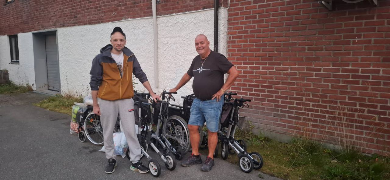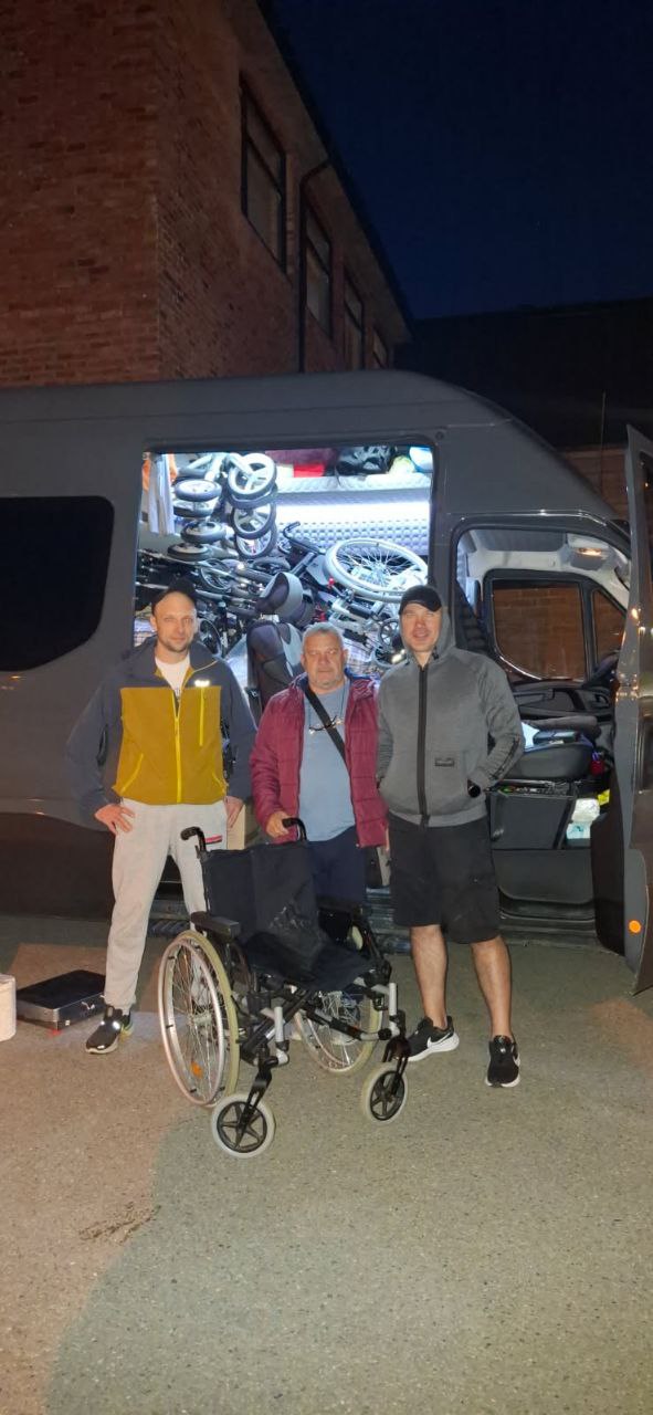 12.09 пізно ввечері наш мікроавтобус сяяв світлом на майданчику в Мальме (комуна Steinkjer). Один за одним у нього лягали інвалідні візки та ролатори. Кожен із них — це чиєсь завтра: можливість дістатися до лікаря, вийти на подвір’я, обійняти рідних без болю. Це перша велика передача від Veldedig HjelpeSenter for Steinkjer kommune (Livet vil vinne) — і вона рушає в Україну.